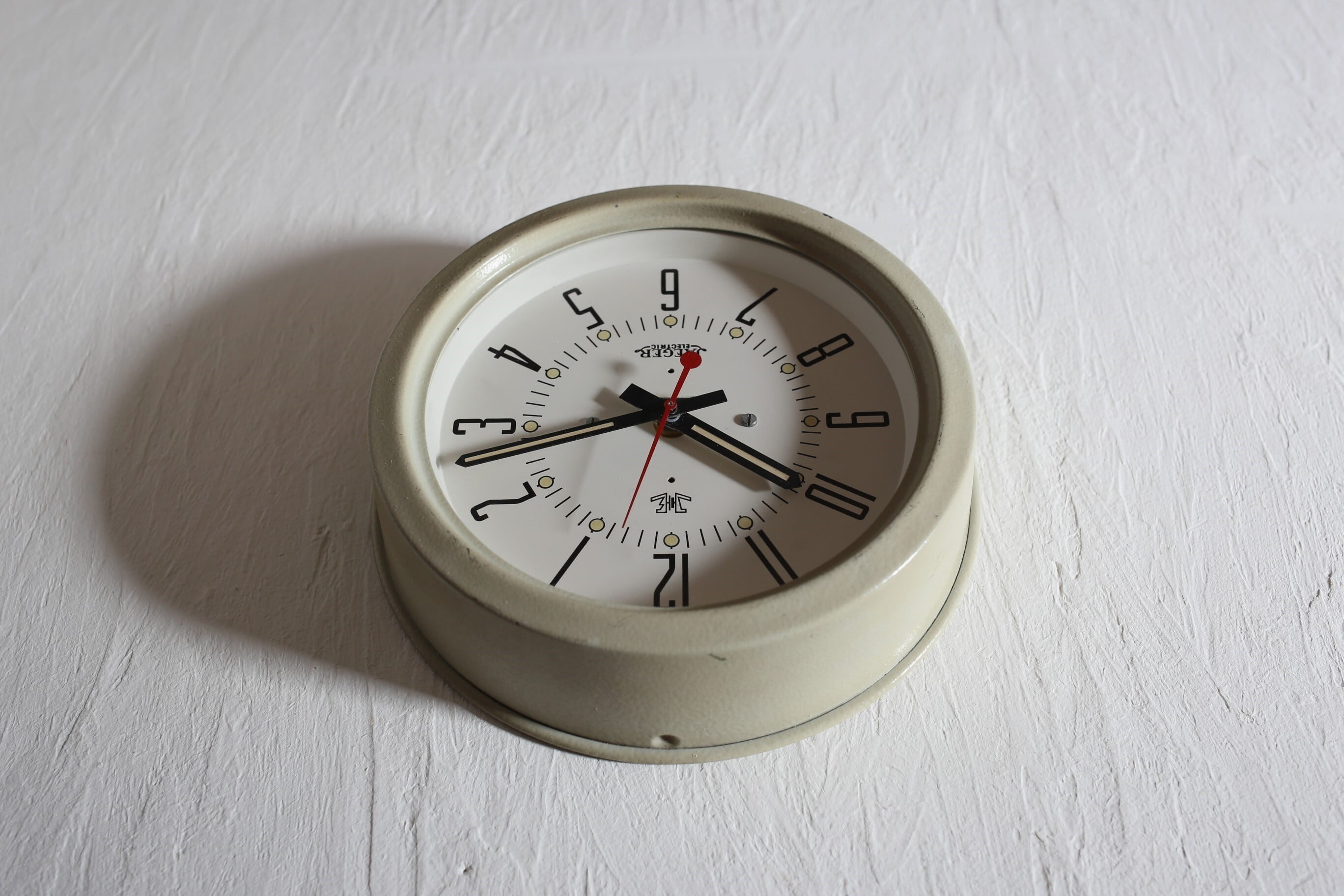 こちらは小ぶりですがインダストリアルで雰囲気が格好良く、文字盤や針のデザインも秀逸な掛時計です。