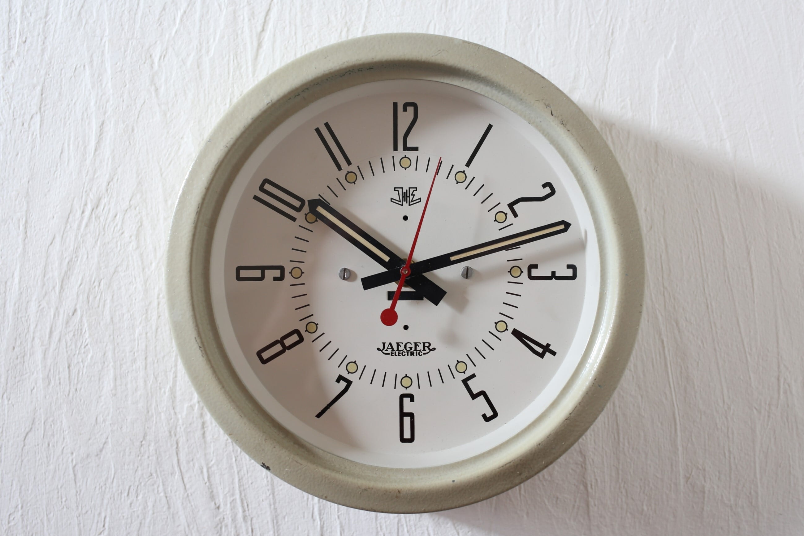 フランス アンティーク ヴィンテージ 『JAEGER ELECTRIC』インダストリアル 掛時計(スイープ式クォーツ交換済) N-05977